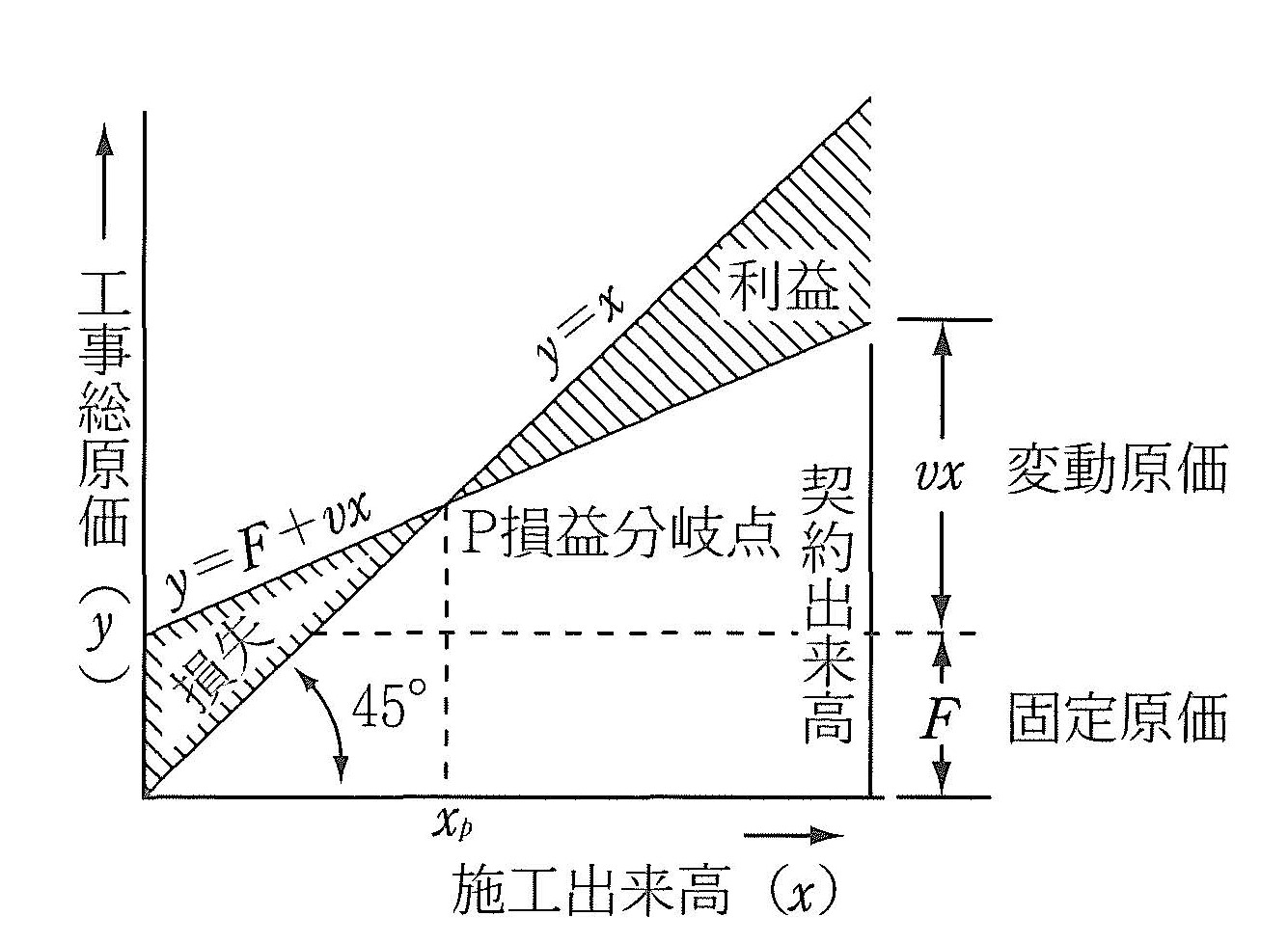 - 損益分岐点:工事運営に要する収入と支出が等しくなり、黒字にも赤字にもならない状態