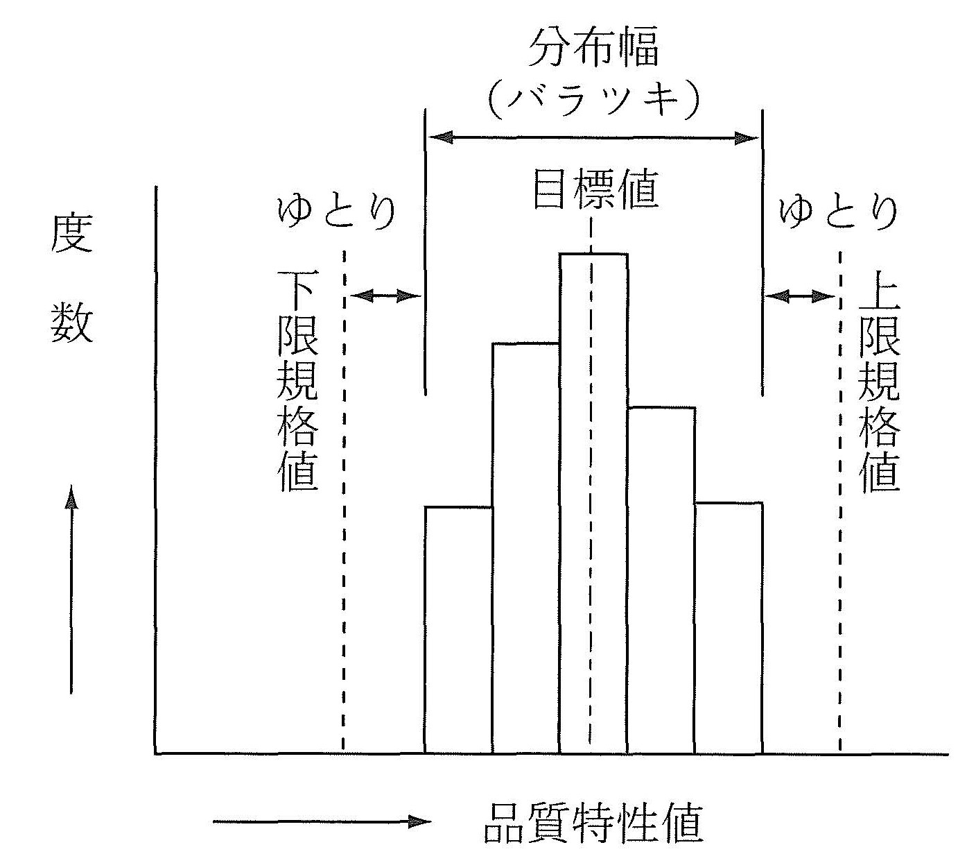 分布が余裕をもって規格値を満足しているかどうかは、ヒストグラムによって調べられる。この場合、まず平均値 X が規格値を満足していることを確かめたのち、次に示す方法によって、分布がゆとりをもって規格値を満足しているかどうかを数値計算して、チェックする。