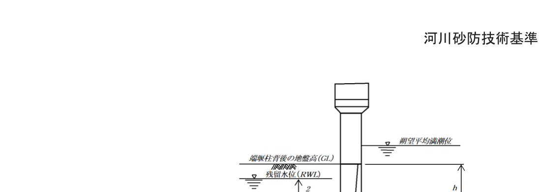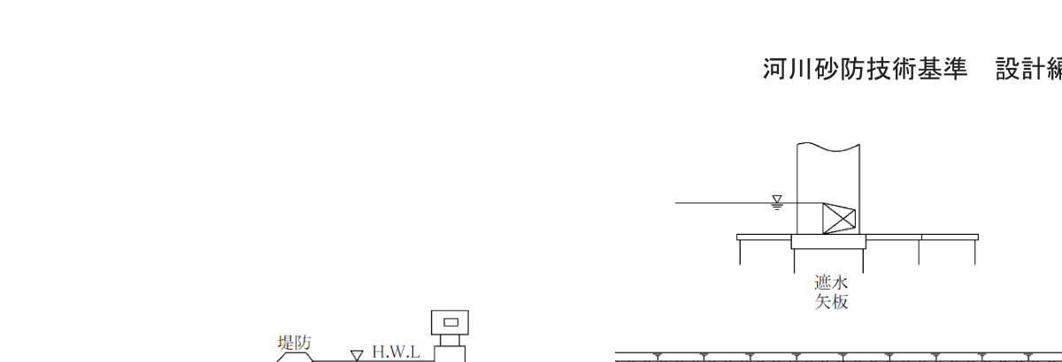- 計画高水位(高潮区間にあっては、計画高潮位)以下の水位の流水の作用に対して安全な構造とするものとする。