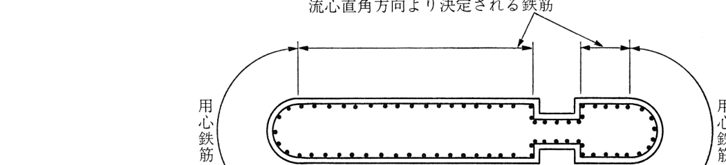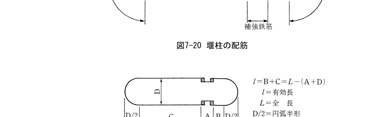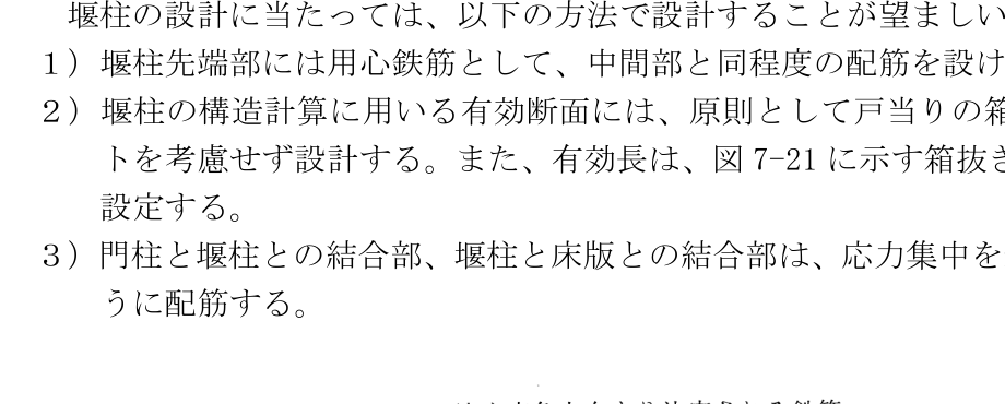 - 堰柱先端部には用心鉄筋として、中間部と同程度の配筋を設ける(図7-20参照)。