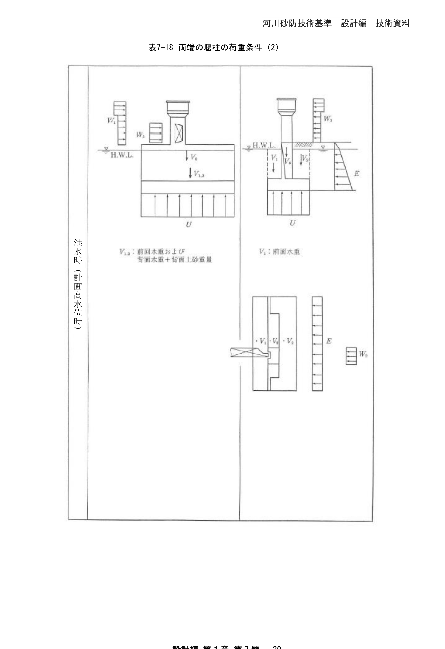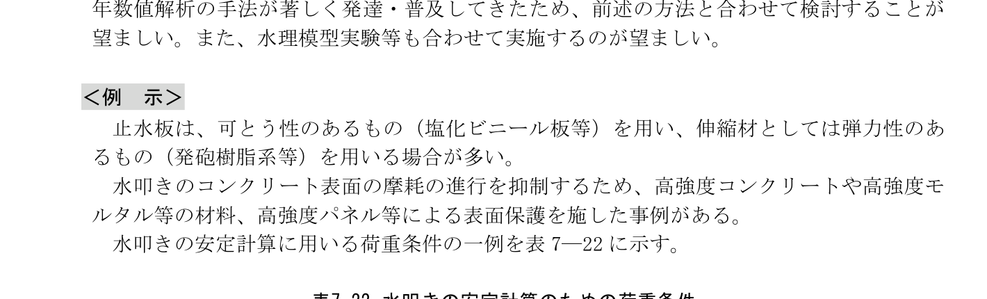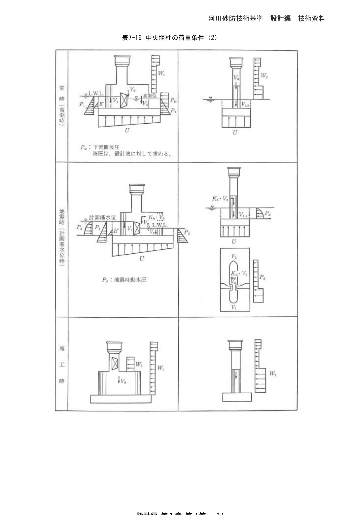 表7-22 水叩きの安定計算のための荷重条件