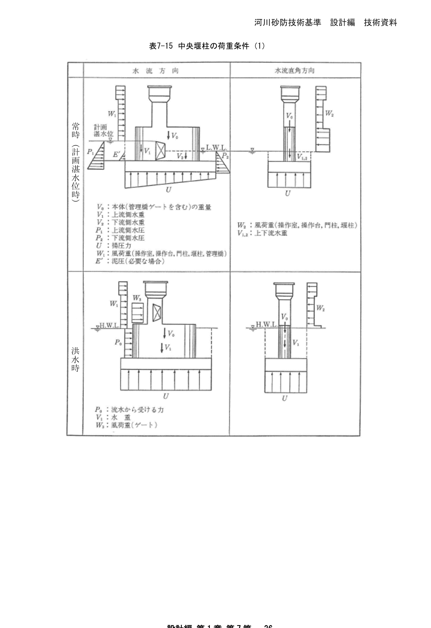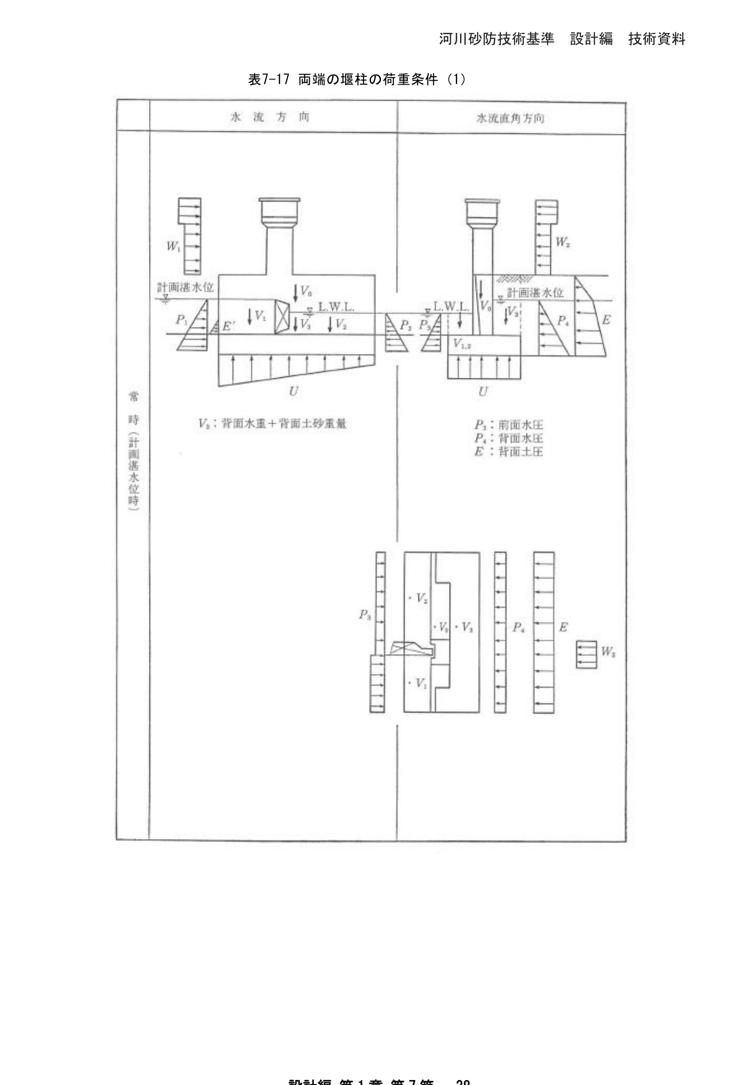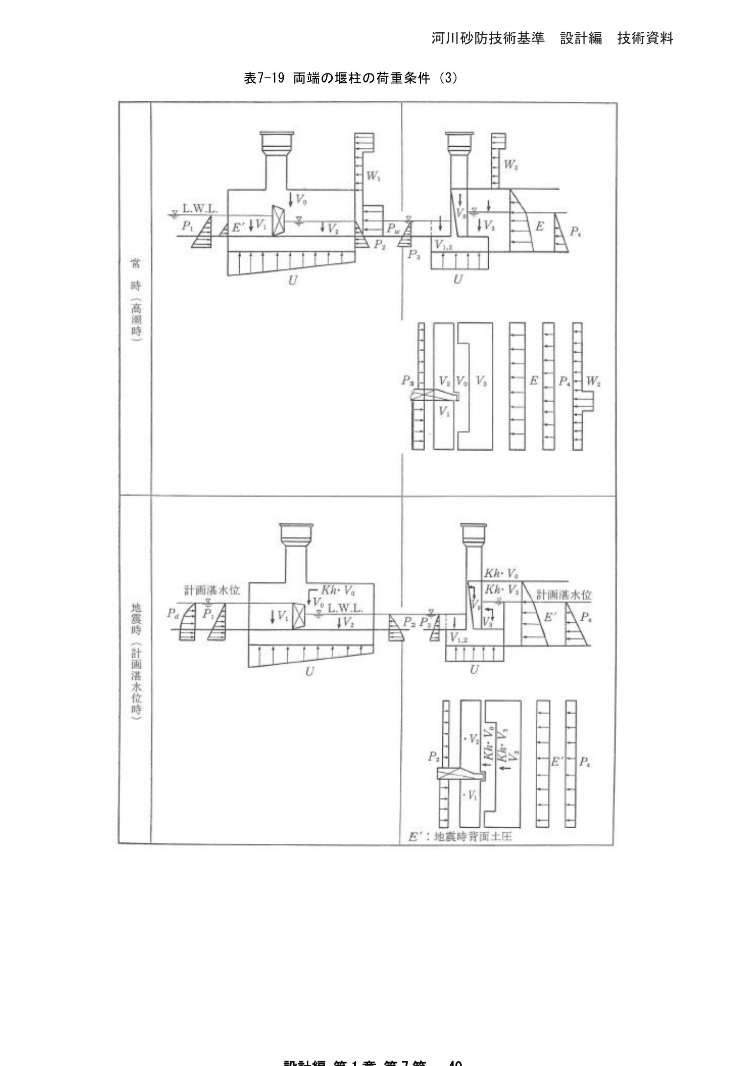 表7-22 水叩きの安定計算のための荷重条件