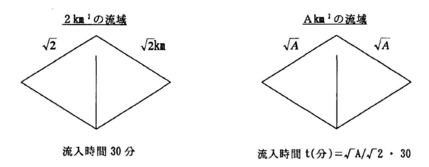 なお、都市流域と自然流域が混在する場合は、100%都市流域、自然流域とした場合の洪水到達時間を面積加重平均より算定する。